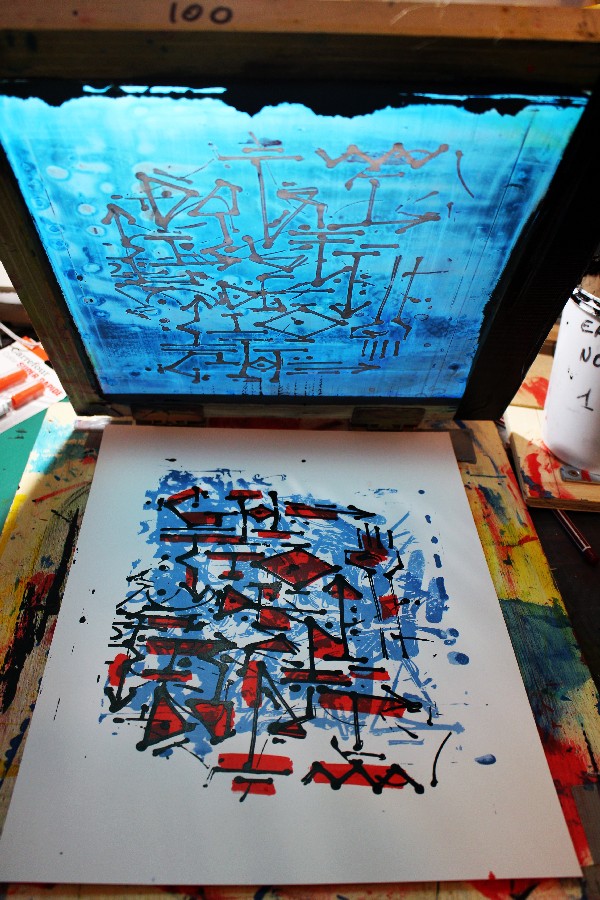 "Cosmopolis", Impression artisanale de 12 estampes sérigraphiées (3 couleurs) par Hyperactivity Rocks en 2016